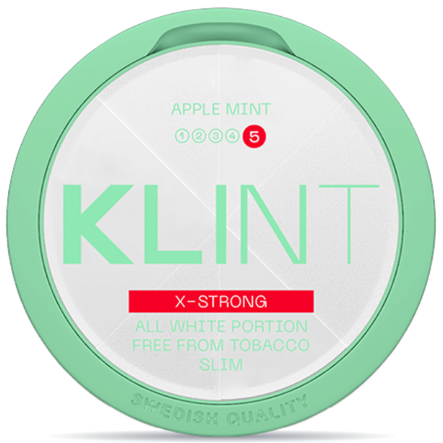 Klint Apple Mint #5 X-strong Slim nicotine pouches offer a refreshing blend of crisp green Granny Smith apples and a cool mint finish, providing a tantalizing experience for the senses. These slim, tobacco-free snus pouches are designed for those who prefer a potent nicotine hit, boasting an extra strong nicotine content of 16.4 milligrams per gram. Crafted for convenience and long-lasting flavour, the white pouches are small and discreet yet pack a punch with their perforated design ensuring a rapid release of the delightful apple-mint combination. Available at Nicotinos, Klint Apple Mint #5 X-strong Slim represents the epitome of quality in the world of nicotine pouches, delivering both a robust nicotine experience and the invigorating taste of mint-infused apples without any tobacco.