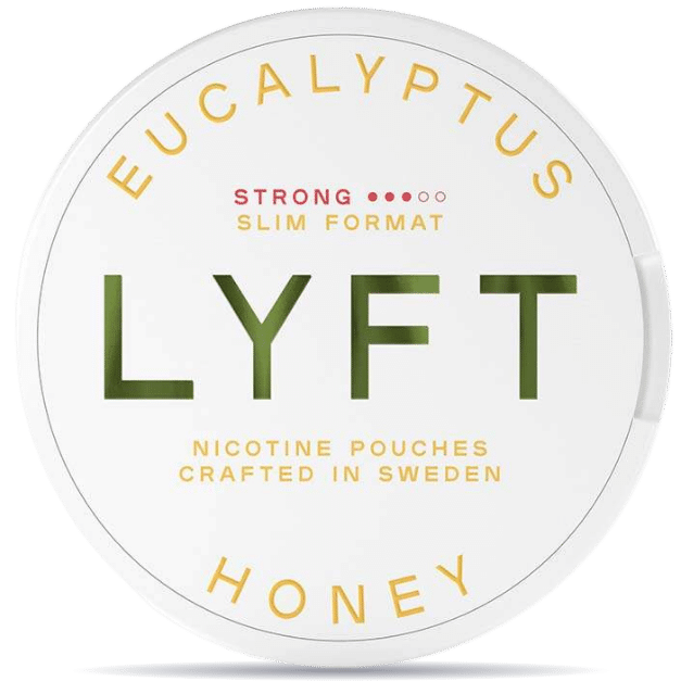 LYFT Eucalyptus Honey Strong is perfectly balances cool menthol notes with rich honey golden notes for two of the best flavors Rated a 3 out of 5 on the strength scale, this strong product contains 10 mg of nicotine in pouch. So, if you’re an experienced player looking for a powerful minty kick, this could be one to add to your rotation.