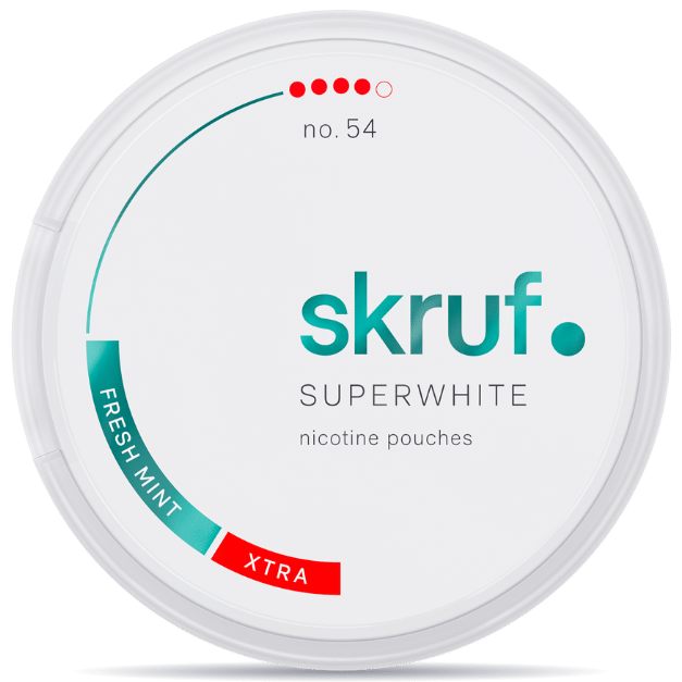 Experience the invigorating chill of SKRUF Superwhite No.54 Fresh Mint Extra Strong, a premium selection in our range of tobacco-free snus available at Nicotinos. Crafted for those who prefer a potent kick, this white pouch boasts a nicotine strength of 11 mg, making it a choice not lightly recommended for beginners. The fresh mint flavor delivers an icy sensation under the lip, enhancing its fresh appeal. For aficionados seeking a robust, nicotine-rich experience, SKRUF Superwhite No.54 Fresh Mint Extra Strong stands out as a must-try. Its bold profile and refreshing taste make it a distinguished option among nicotine pouches for the discerning user.